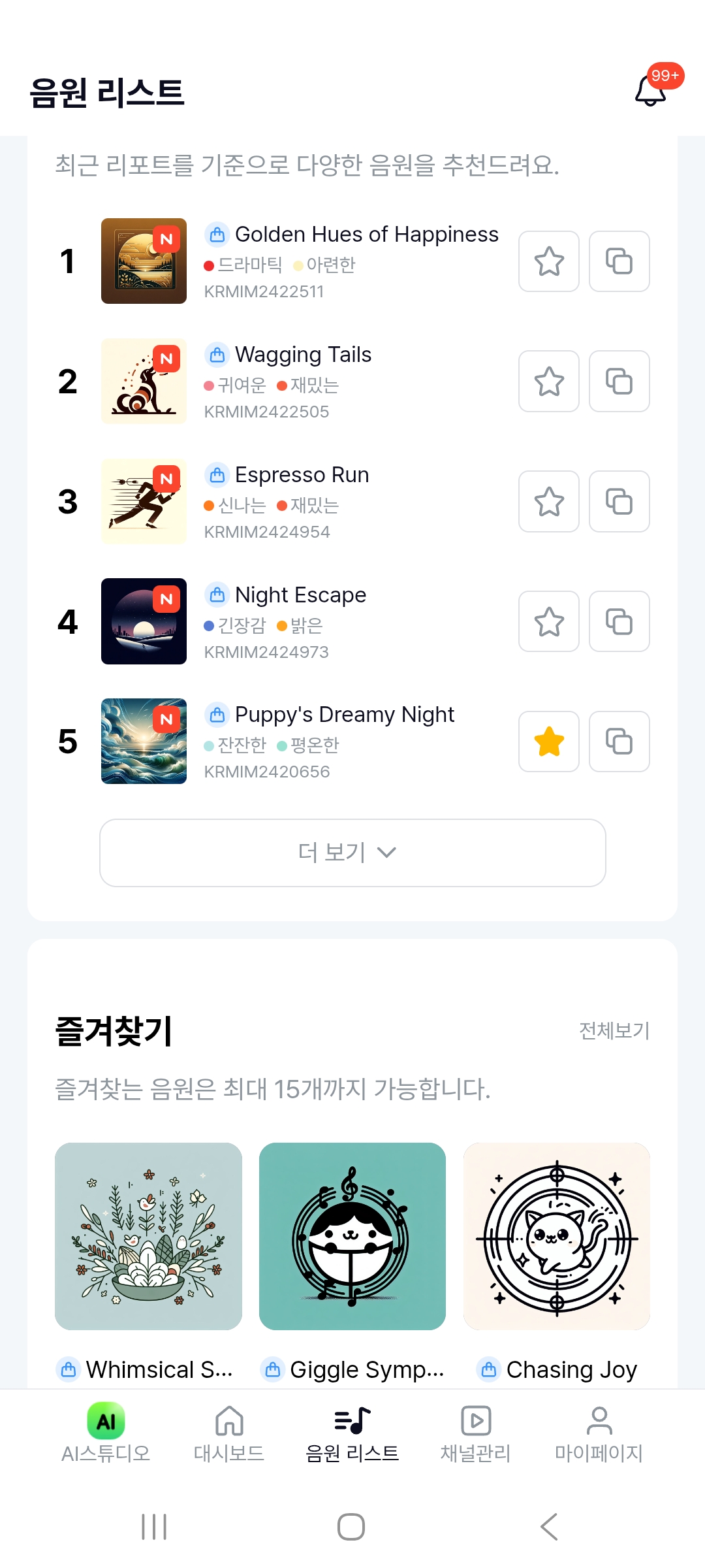 이미 업로드한 영상 중 짤 스튜디오 음원을 사용한 콘텐츠는 문제가 없는지 확인이 필요합니다. - 대체 음원 찾기
