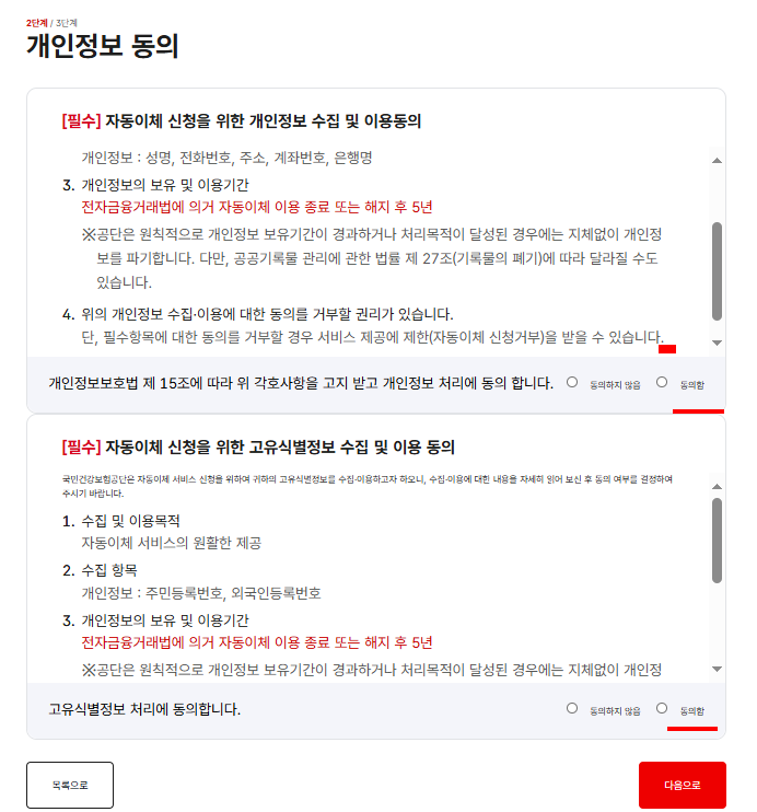 - 등록된 은행 계좌 자동이체 내역 확인 후 해지 신청 진행