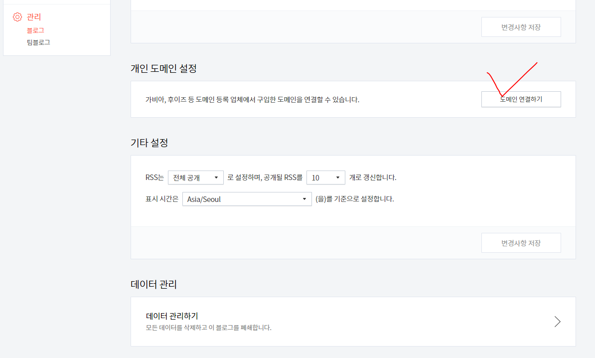 다시 티스토리 블로그로 가서 개인 도메인 설정을 하겠습니다.